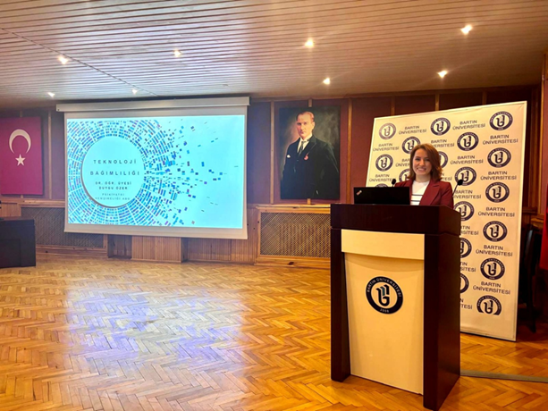 Etkinlikte ayrıca sağlıklı dijital kullanım alışkanlıklarının geliştirilmesi, ekran süresinin bilinçli şekilde sınırlandırılması, dijital detoks uygulamaları ve alternatif baş etme stratejileri gibi koruyucu-önleyici yaklaşımlar paylaşıldı. Bu kapsamda, teknolojiyle sağlıklı bir ilişki kurmanın bireysel iyi oluş ve mesleki gelişim açısından kritik bir unsur olduğu bir kez daha hatırlatıldı.